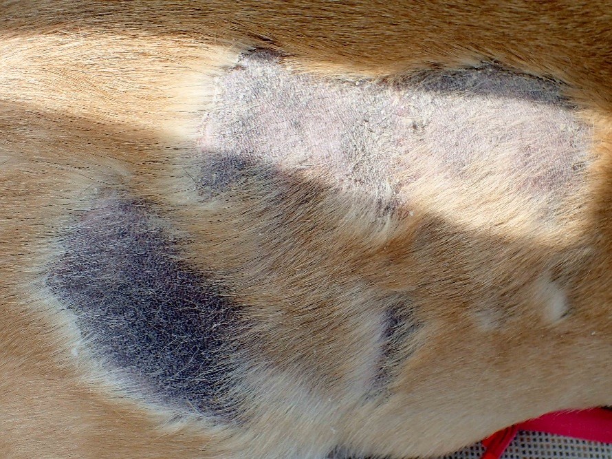 右腰部の脱毛と慢性的な皮膚トラブル