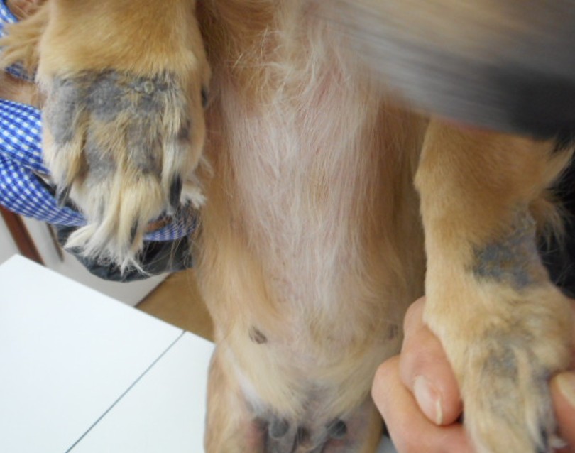 長引くお腹の赤みと手足の舐め癖
